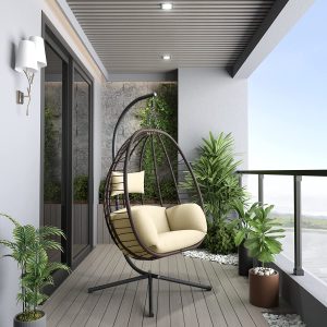 Kevarada Egg Chair with Stand Hammock Chair Wicker Rattan Patio Hanging Egg Chair, Indoor Outdoor Swing Egg Chair with Cushion Headrest for Patio Bedroom Porch Garden Balcony, Cream